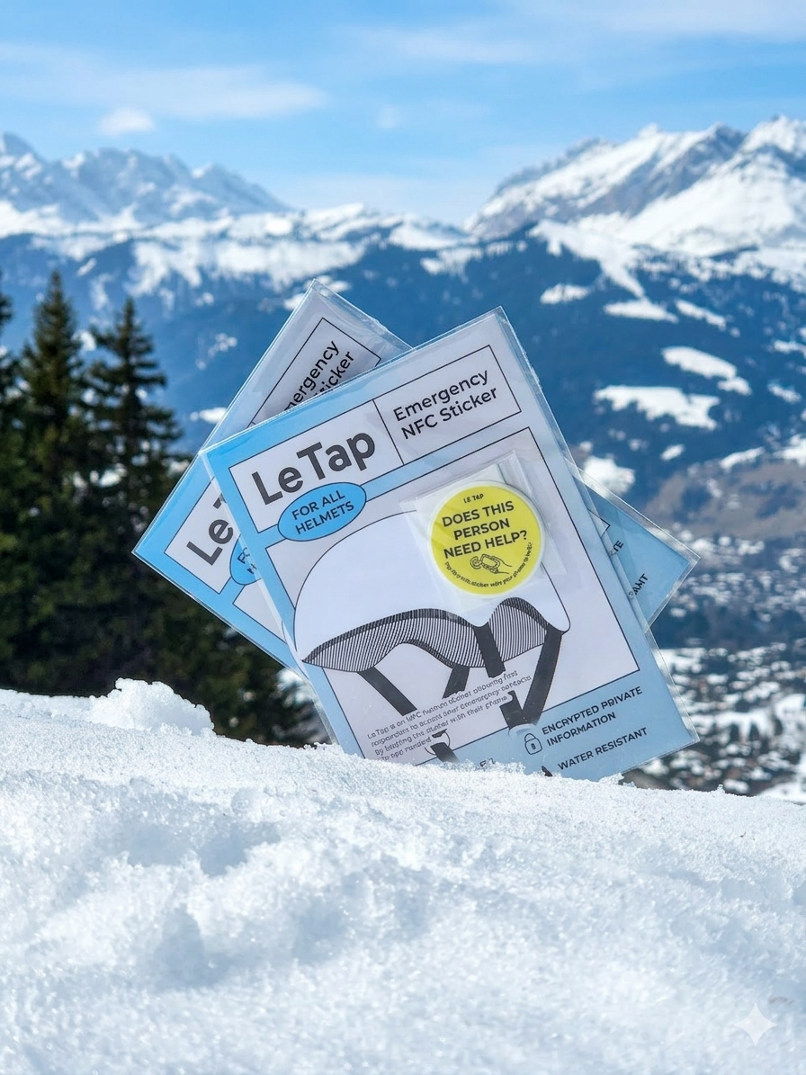 Two NFC stickers, one account. Stick them on your cycling helmet, ski helmet, or horse riding helmet. Anyone with a smartphone can tap to see your emergency contacts instantly. No app, no unlock screen, no fuss.