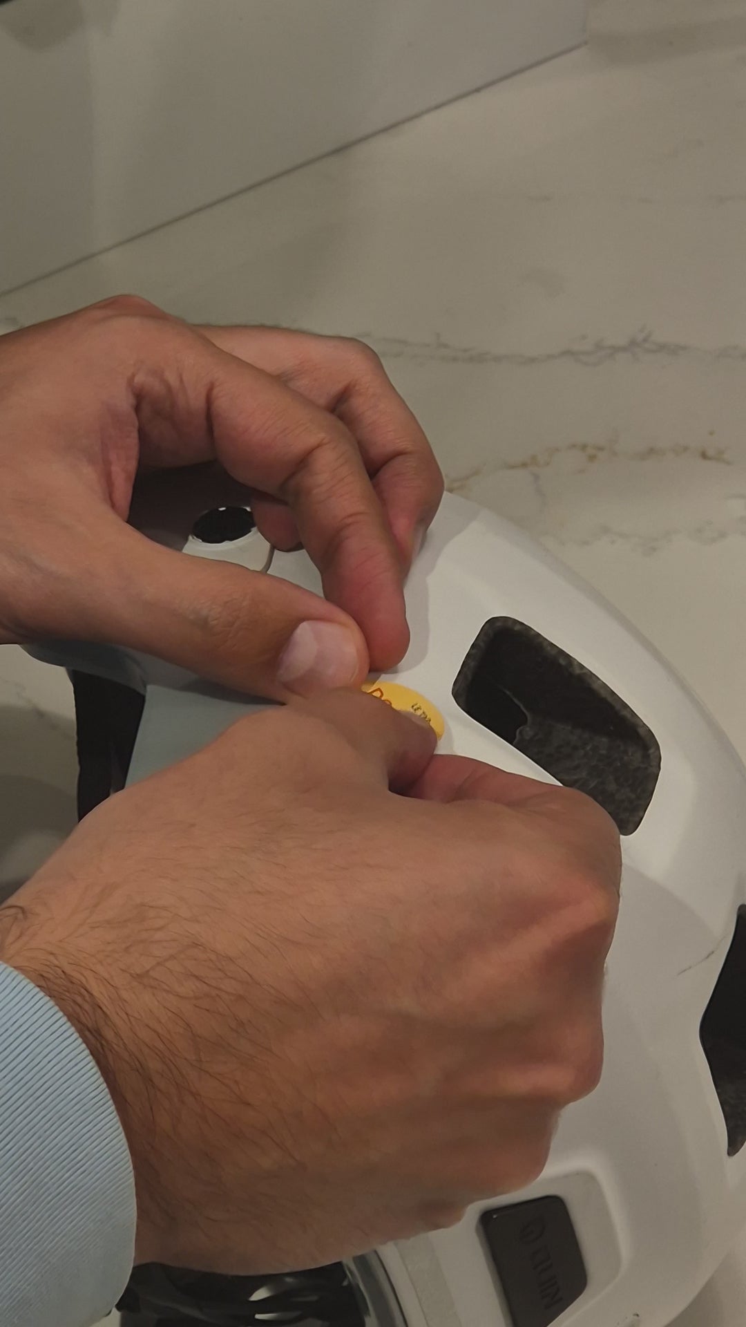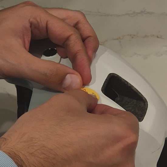 At 3.5 cm in diameter, each sticker is precision sized to sit discreetly on any helmet without getting in the way. One for each side, so your contacts are visible no matter which way you fall.